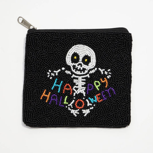 Happy Halloween Message Sequin Beaded Mini Pouch Bag