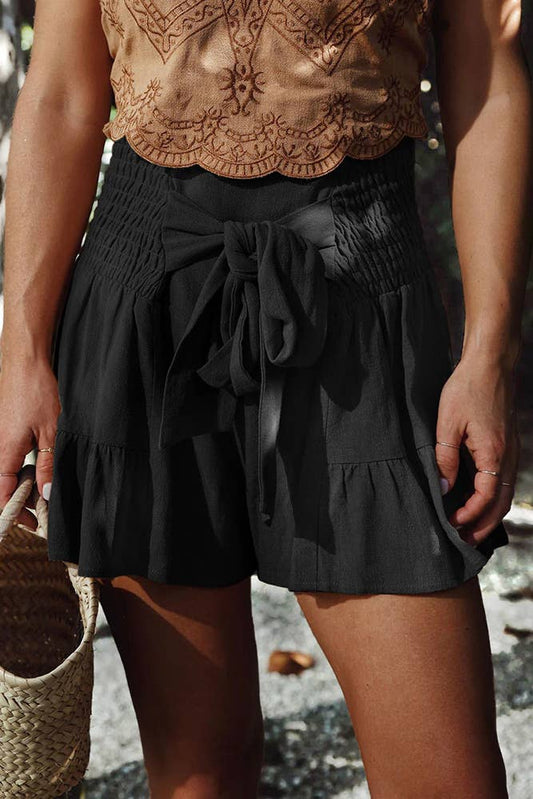 HIgh Waist Tie Knot Ruffle Shorts ZZKF774: Black / S