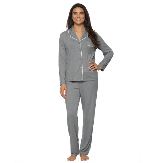 Jessie Stretch Jersey Long Sleeve & Pants PJ Set - Heather S