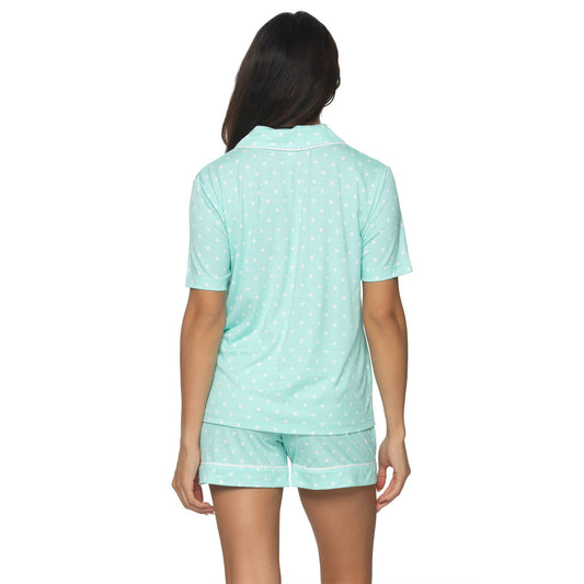 Jessie Stretch Jersey Shorts Sleeve & Shorts PJ Set - Blue: Island Paradise White Dots (IWD) / S