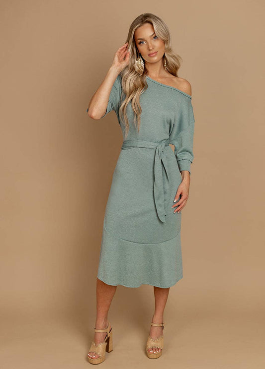 Knit Drop Shoulder Loose Fit Sweater Dress