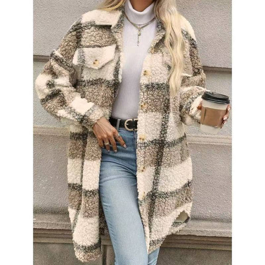 Plaid Single-breasted Detachable Hooded Shacket TOPW1575