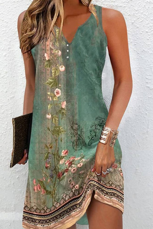 Printed V Neck Button Sleeveless Dress CK09: 07 / M