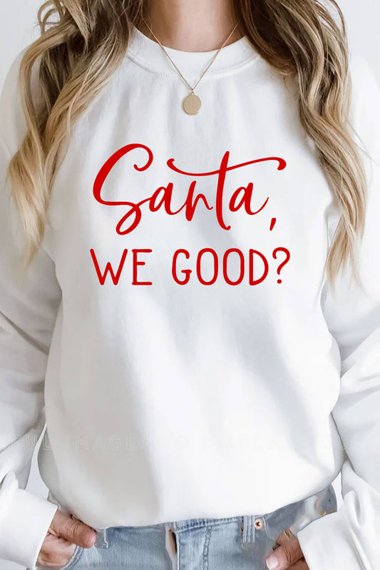 Santa, We Good?, Christmas, Unisex Cotton Fleece Sweatshirt: White/Red / S