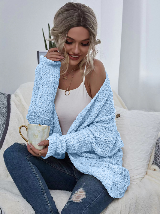 Sky Blue Chunky Knit Open Cardigan w/ Pockets: L