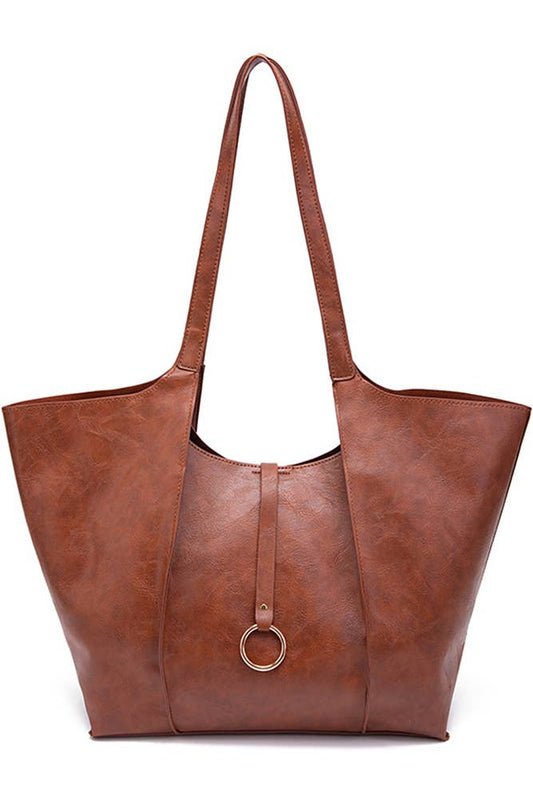 Solid Color Large Capacity Leather Tote Bag MOQ 3PCS MG014: Black / One Size