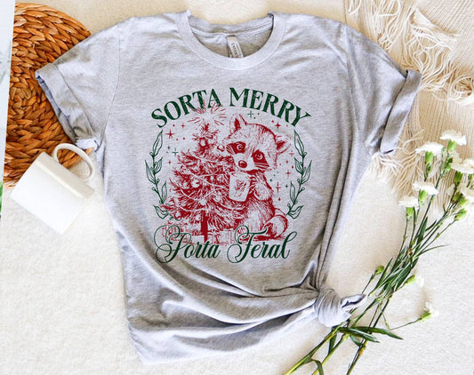 Sorta Merry Sorta Feral - Funny Raccoon Christmas T-Shirt