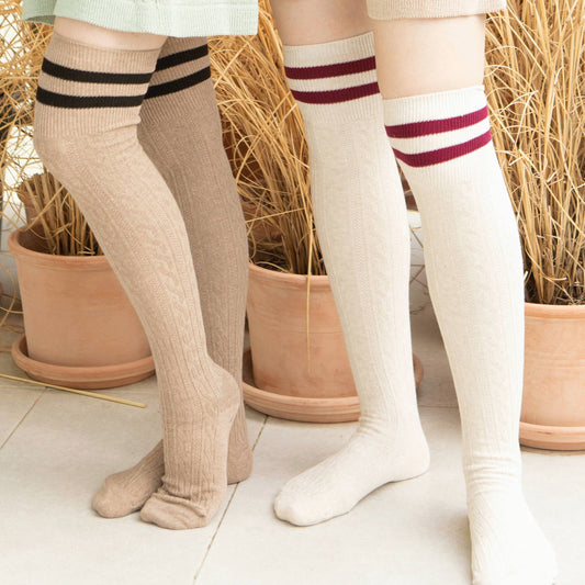 Striped Over the Knee High Socks: MOCHA / Z252O0013Z