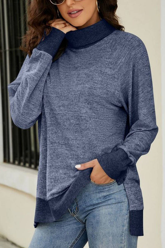 WOMEN HIGH TURTLE NECK LONG SLEEVE JUMPER TOP_CWTBLL0185: Blue / (XL) 1