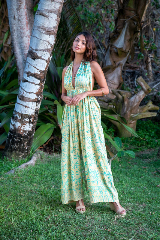 Elizabeth Convertible Beach Jumpsuit Sarong, Summer Jumpsuit: Turquoise Rainbow