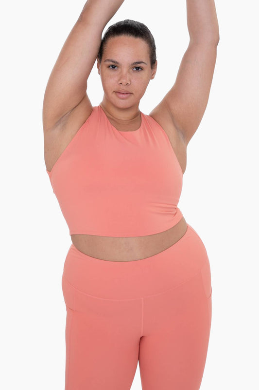 CURVY Strap Back Cropped Top with Built-In Sports Bra: DUSTY CORAL / XL:1XL:2XL:3XL (2:2:1:1)