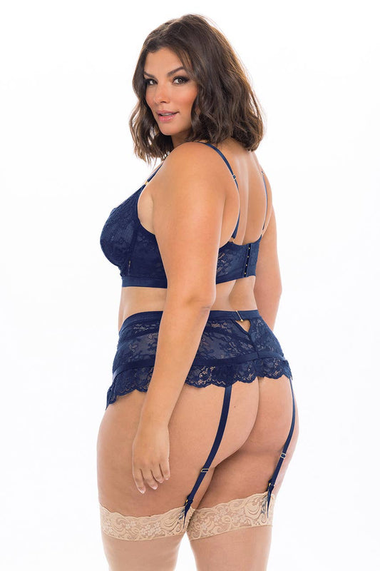 ADRIENNE LACE 3PC BRA SET: Estate Blue / 1X