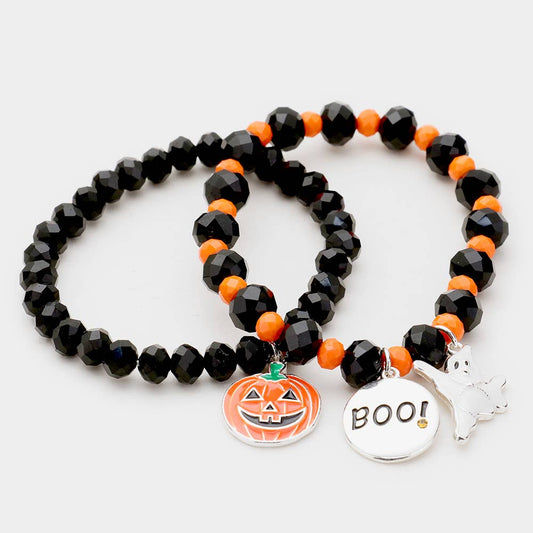 2Pcs - Halloween Charm Stretch Bead Layered Bracelets