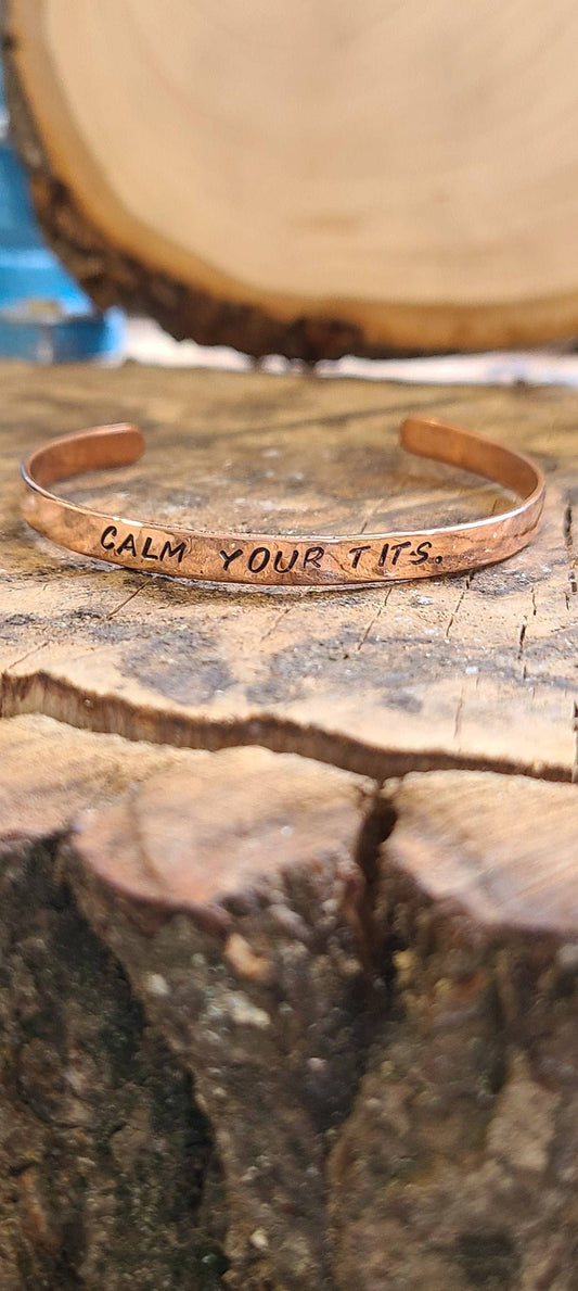 Calm Your Tits - Copper or Brass Gold Bangle Bracelet
