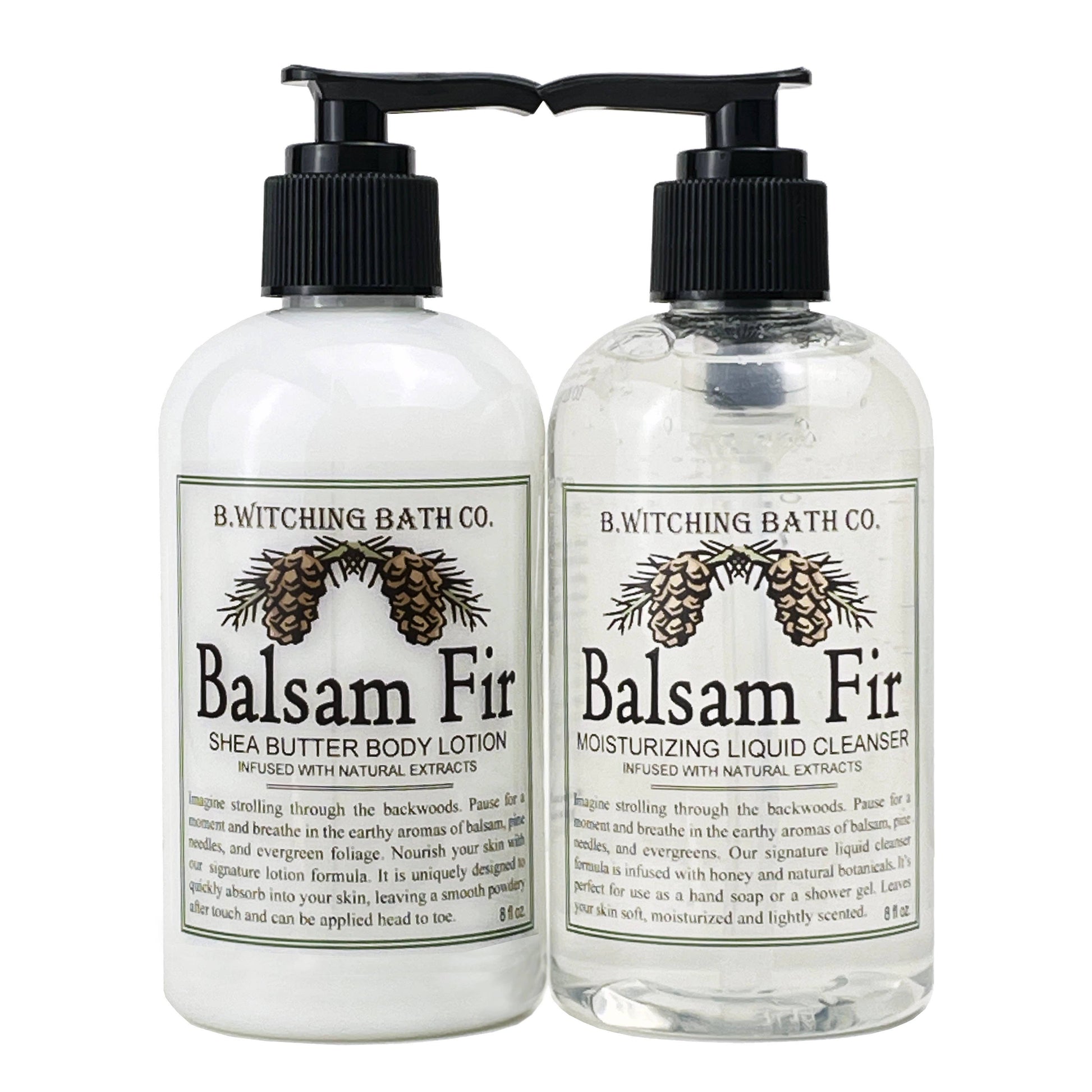 Enjoy seasonal aromas of balsam, pine and evergreens.Our select formulas will condition skin leaving it lightly scented. This set includes one 8oz lotion and one 8oz liquid cleanser, beautifully packaged in an cello bag with a green bow.