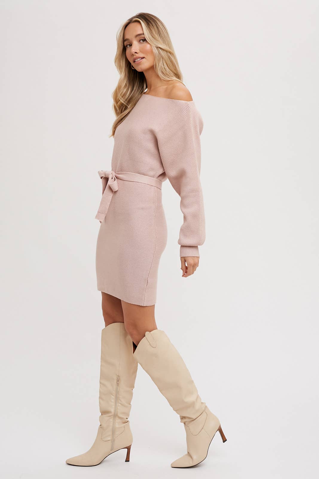 Introducing a versatile boatneck sweater dress that effortlessly blends comfort and style. This dress is crafted from super-soft and stretch rib knit fabric, ensuring a cozy and comfortable fit. The boatneck design adds a touch of elegance to your ensemble while offering a classic neckline. With its relaxed body-con silhouette, this dress strikes a balance between comfort and fashion. The waist tie detail enhances the waistline and adds a stylish touch, allowing for versatile styling options. Whether worn casually or dressed up, this boatneck sweater dress is a versatile addition to your wardrobe, perfect for expressing your personal style effortlessly. This style is perfect for Christmas outfit on holiday season.