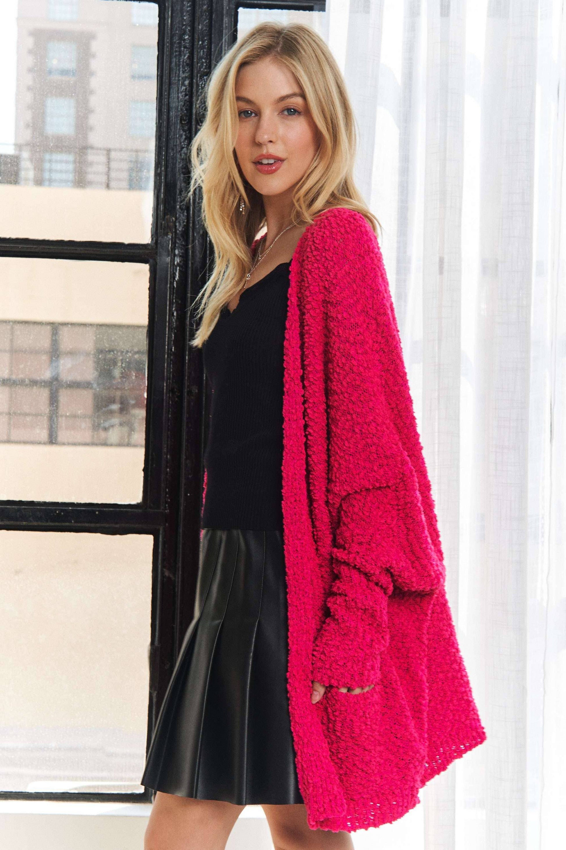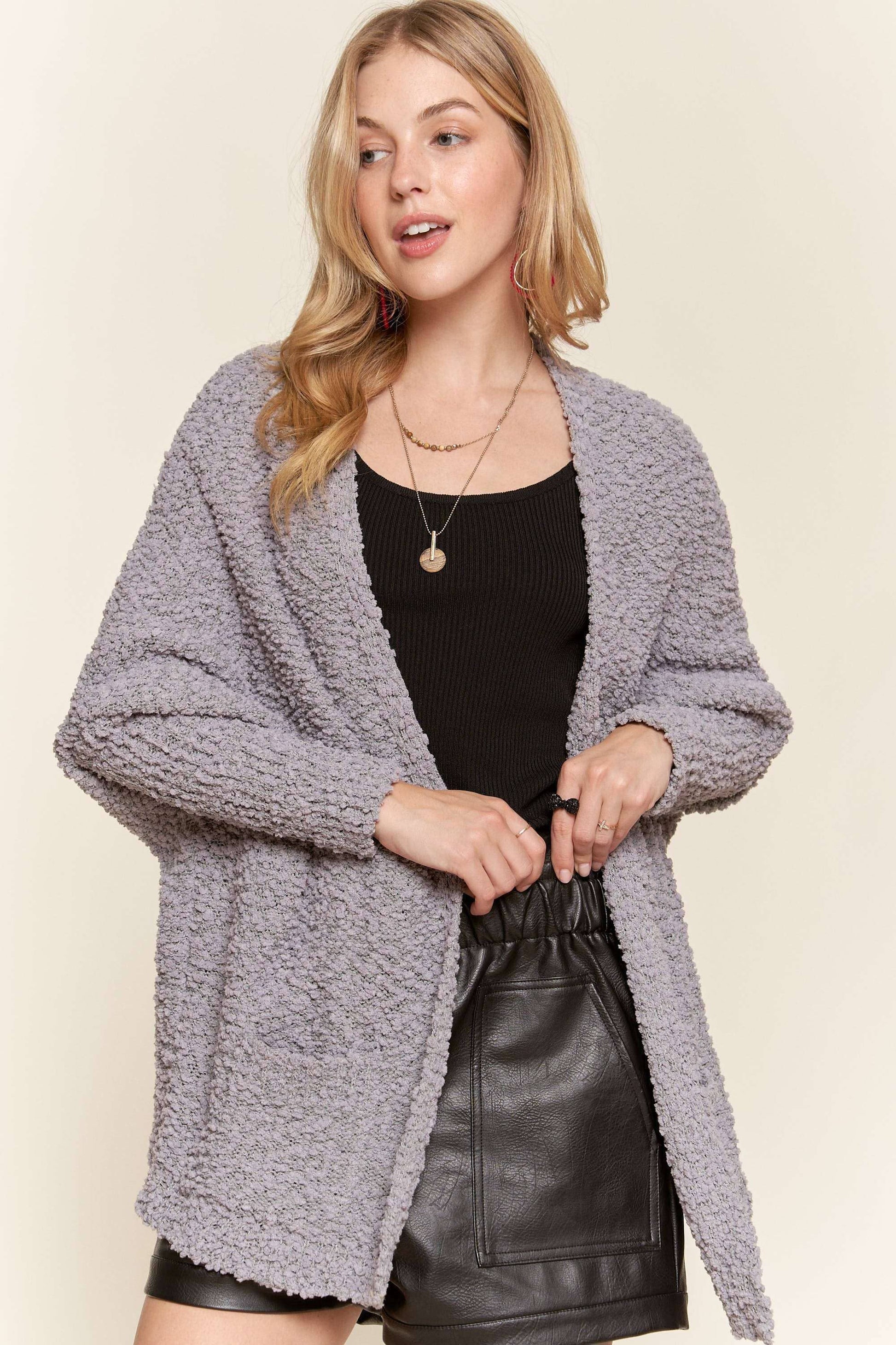 POPCORN KNIT SWEATER CARDIGAN WITH POCKETS