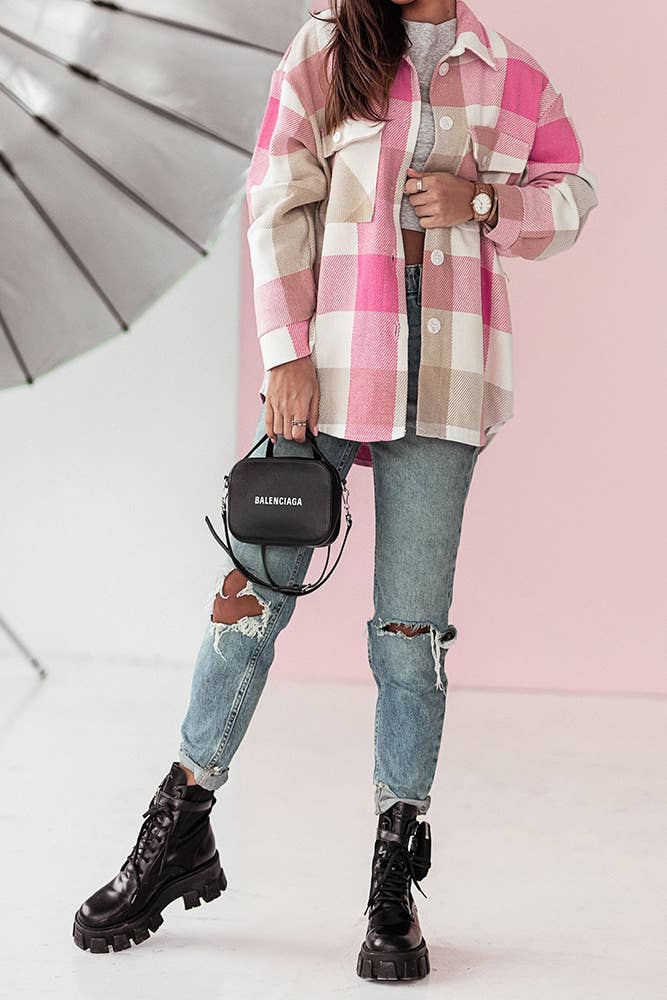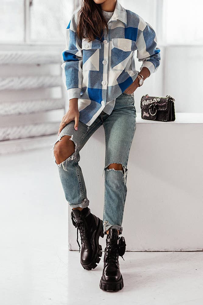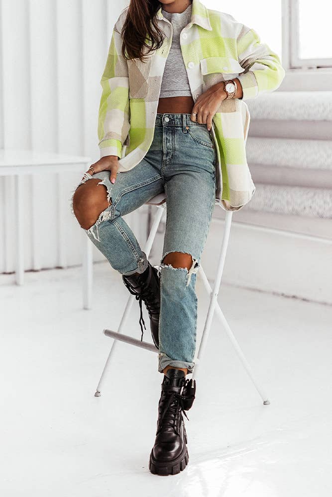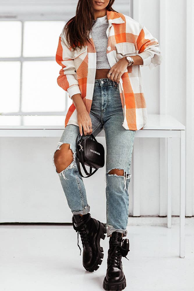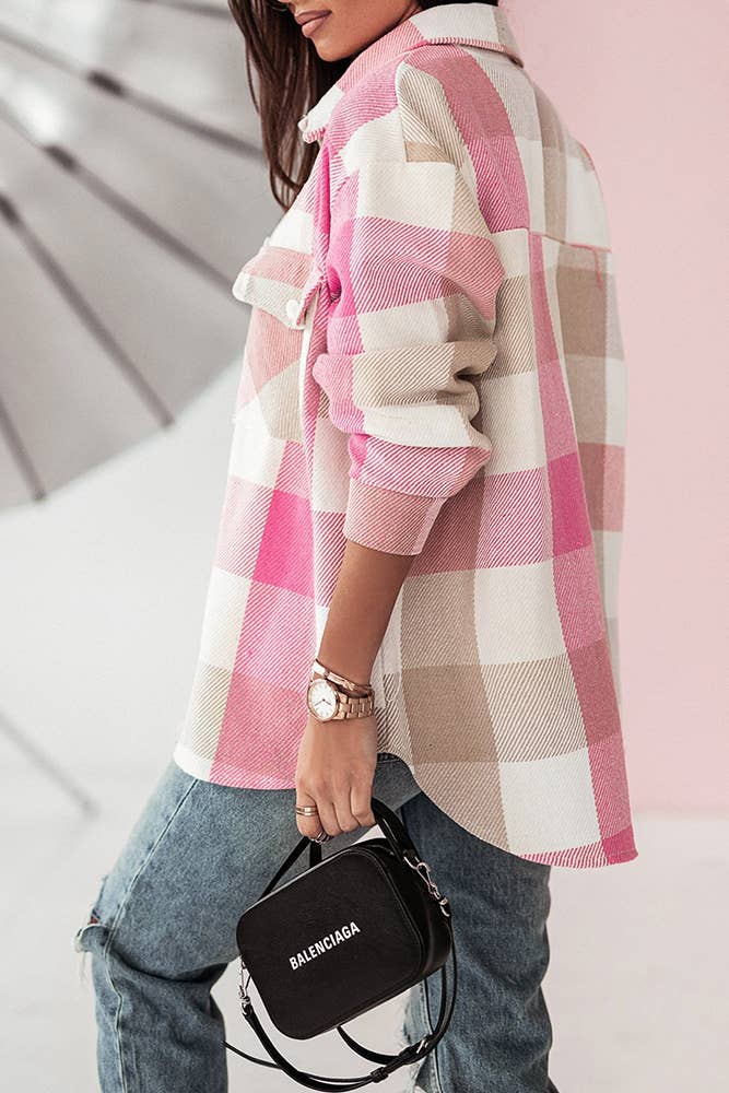 Colorful Open Button Pockets Plaid Shackets FHB012