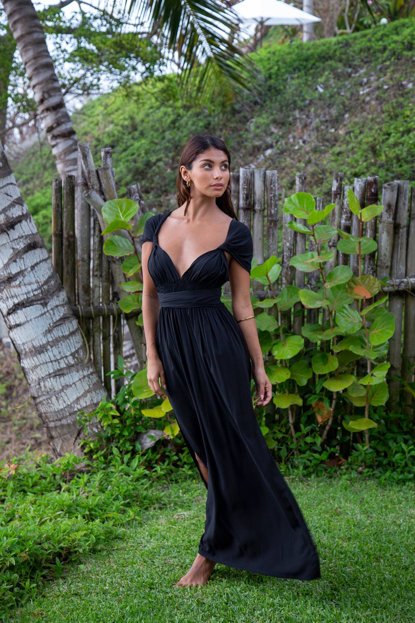 Convertible Tammy Dress in Solid Black OS fits XS-M size 0-6: Solid Black