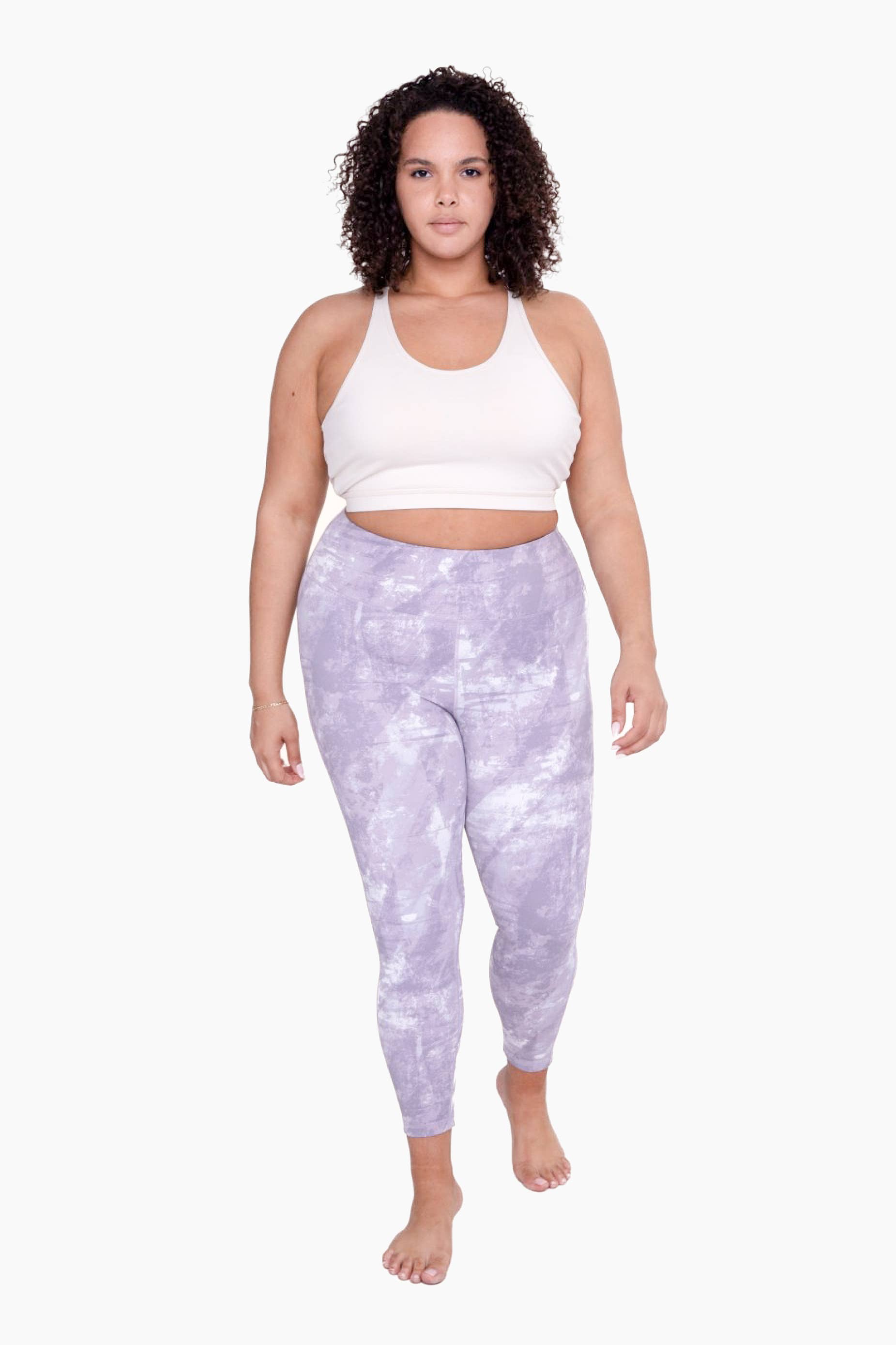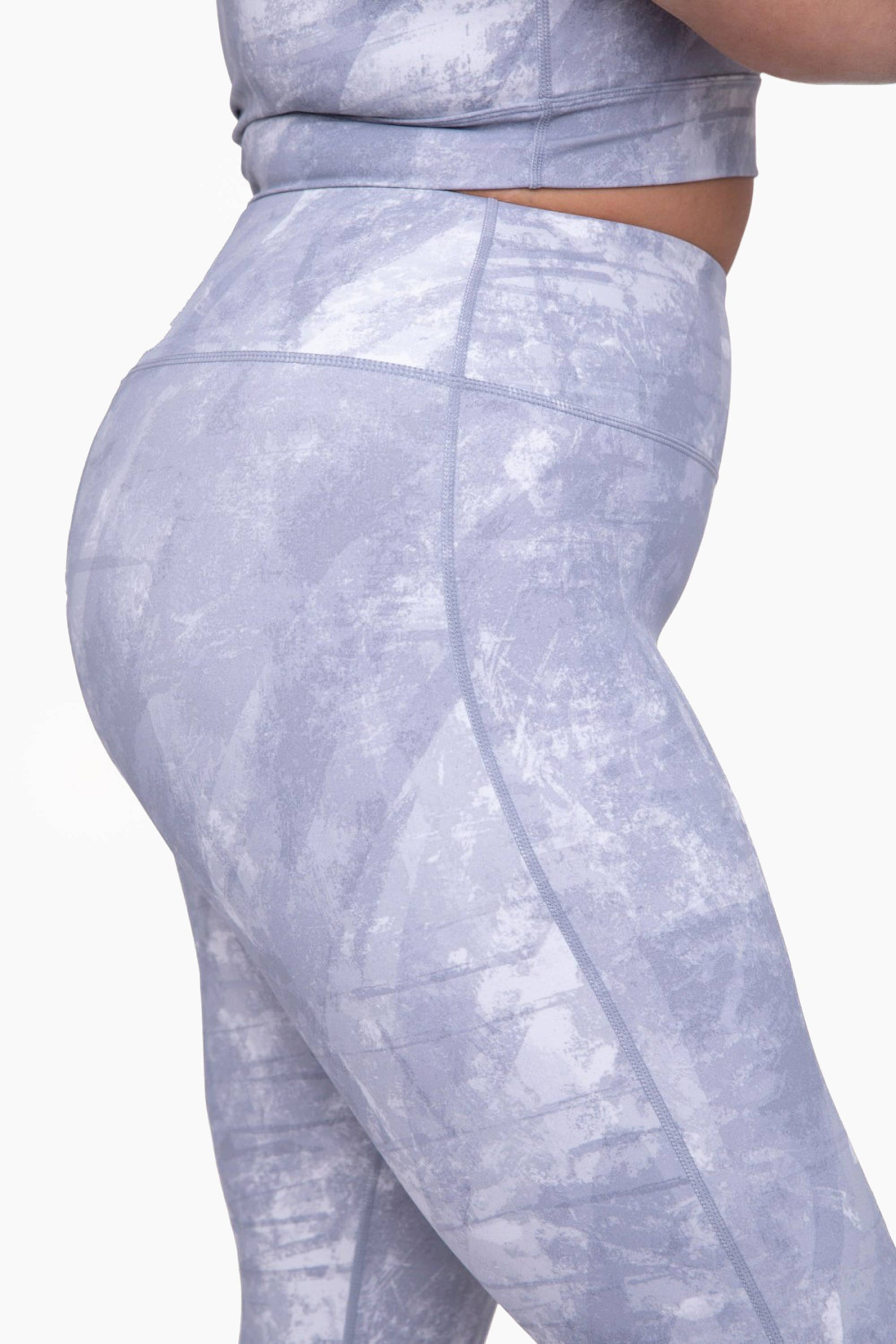 With an industrial inspired print, these leggings are a 7/8th length and a high-waist for additional ab support. Pair them with a matching sports bra, high socks, and sneakers for an athleisure look.