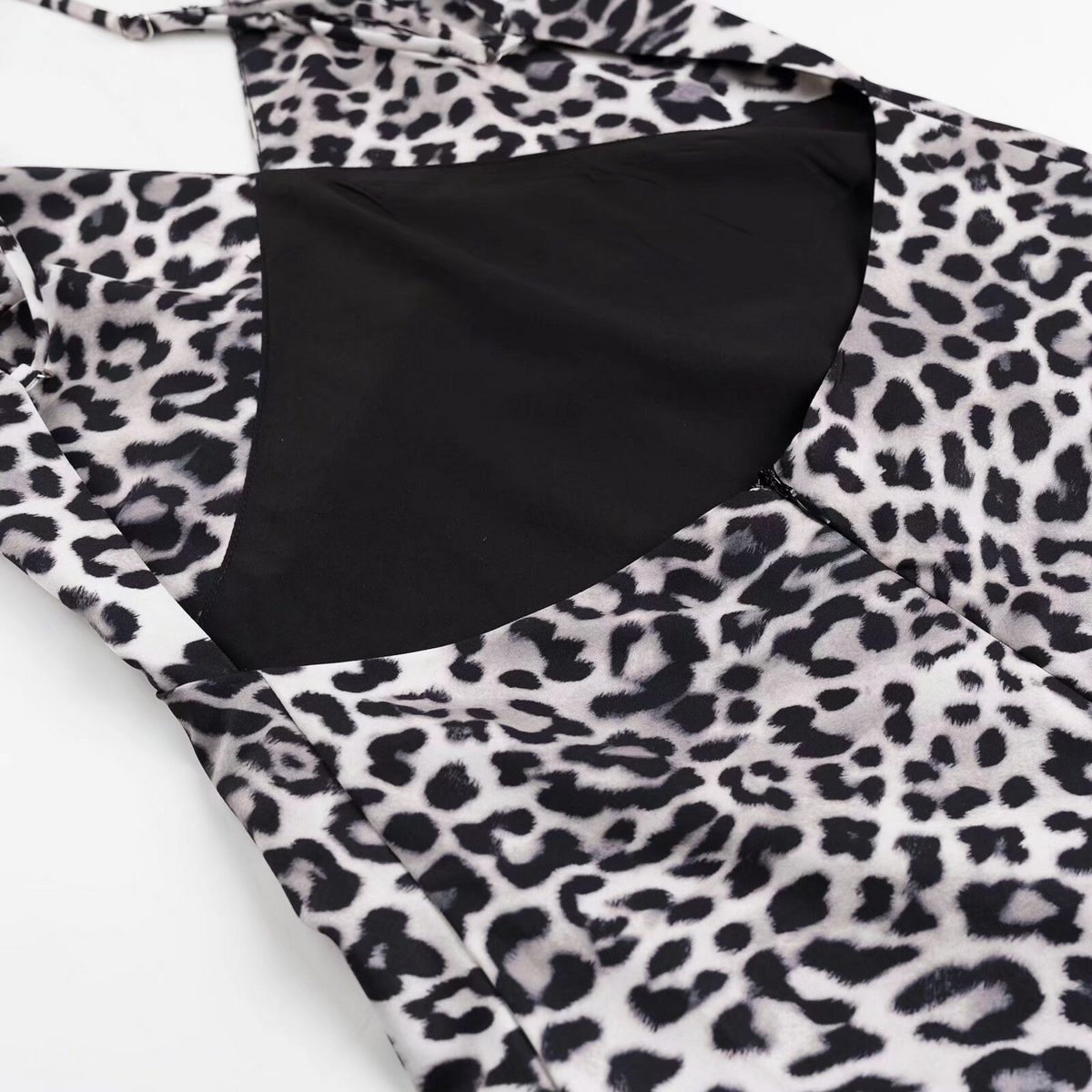 Elegant French Print Crew Neck Midi Dress_CWDMD5823