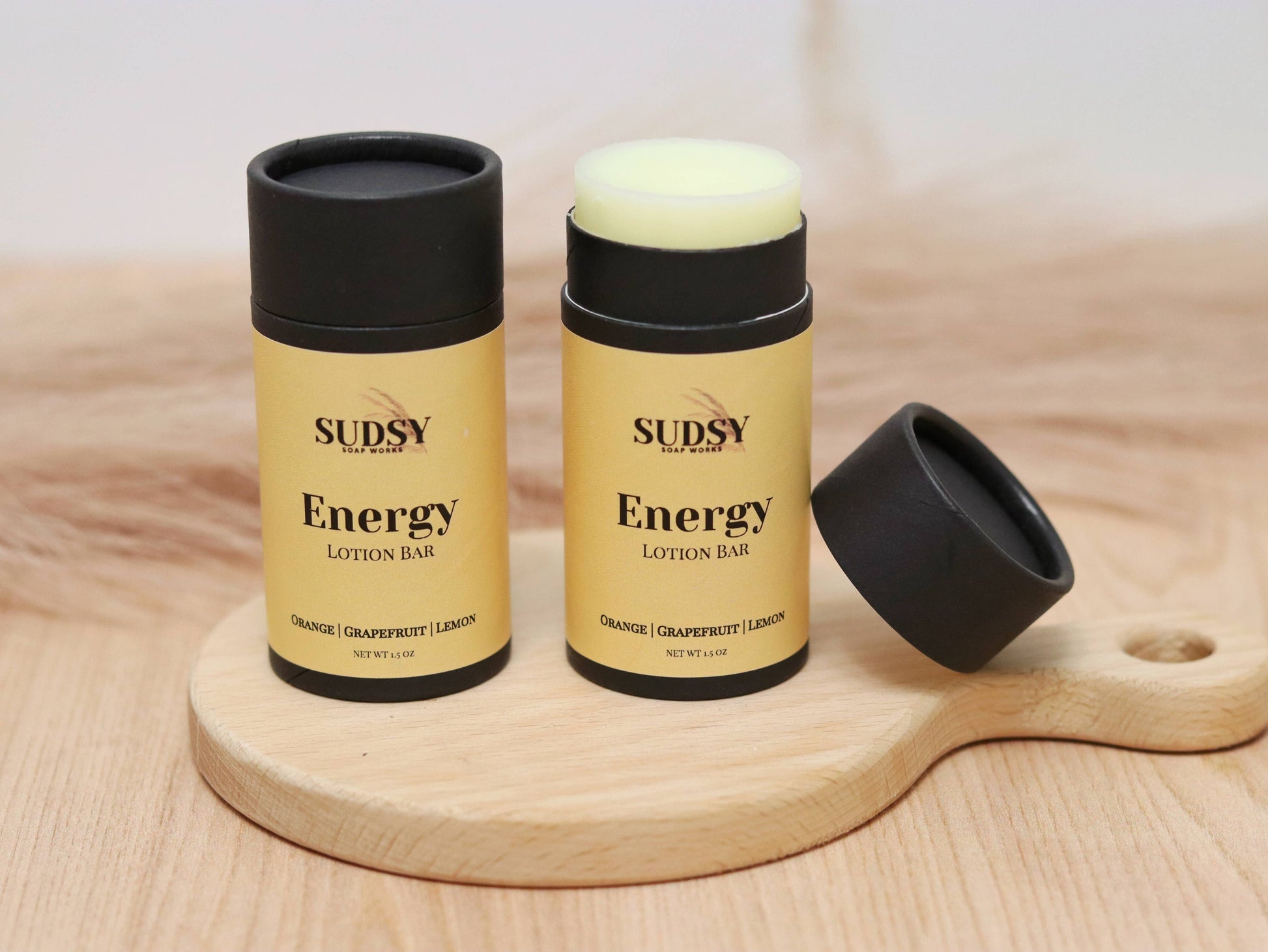 Our solid lotion bars are made with skin soothing butters and oils such as cocoa butter, shea butter, and grape seed oil! Vitamin E is added to moisturize dry and flaky skin. Our lotion bars absorb into the skin quickly and will make your skin feeling silky and soft!