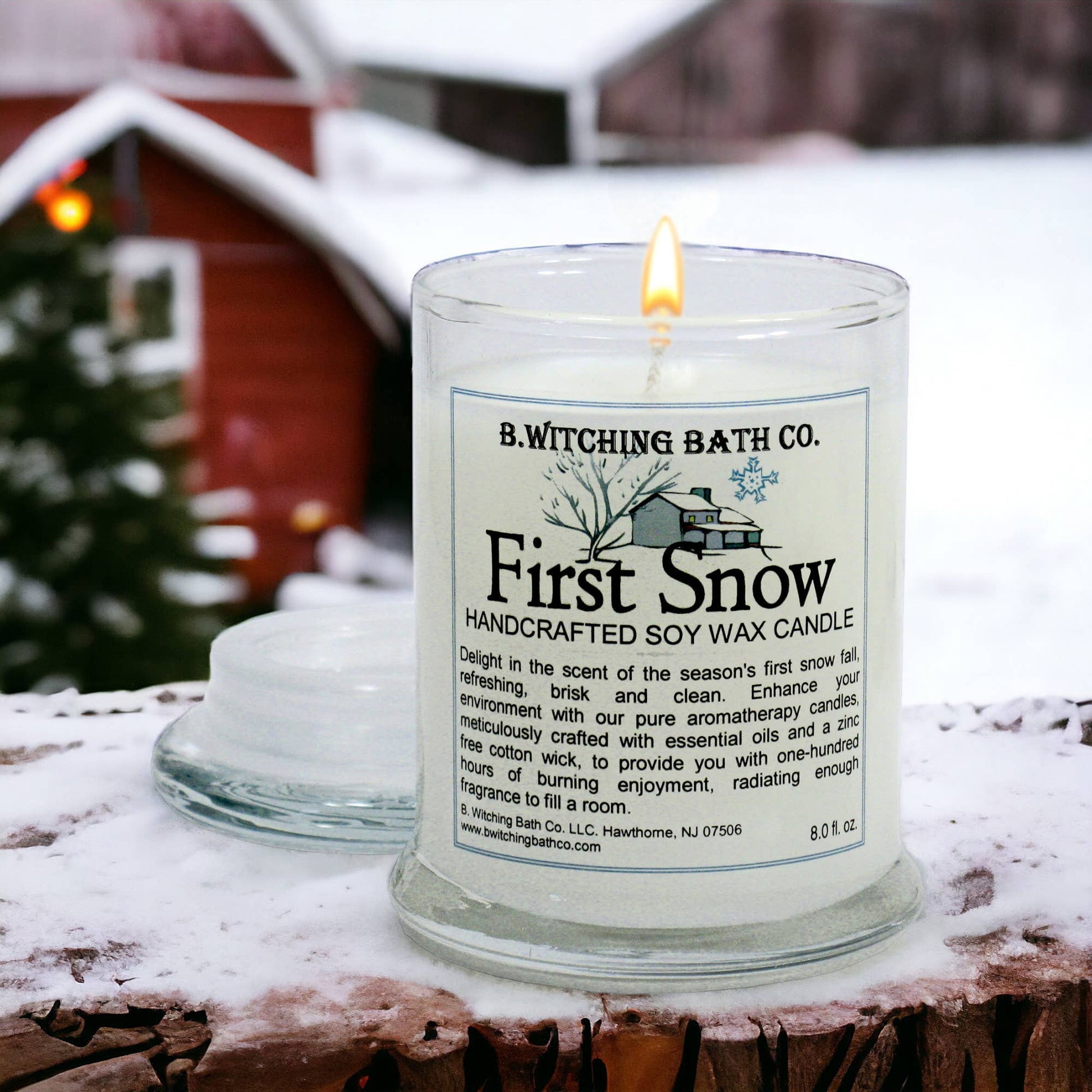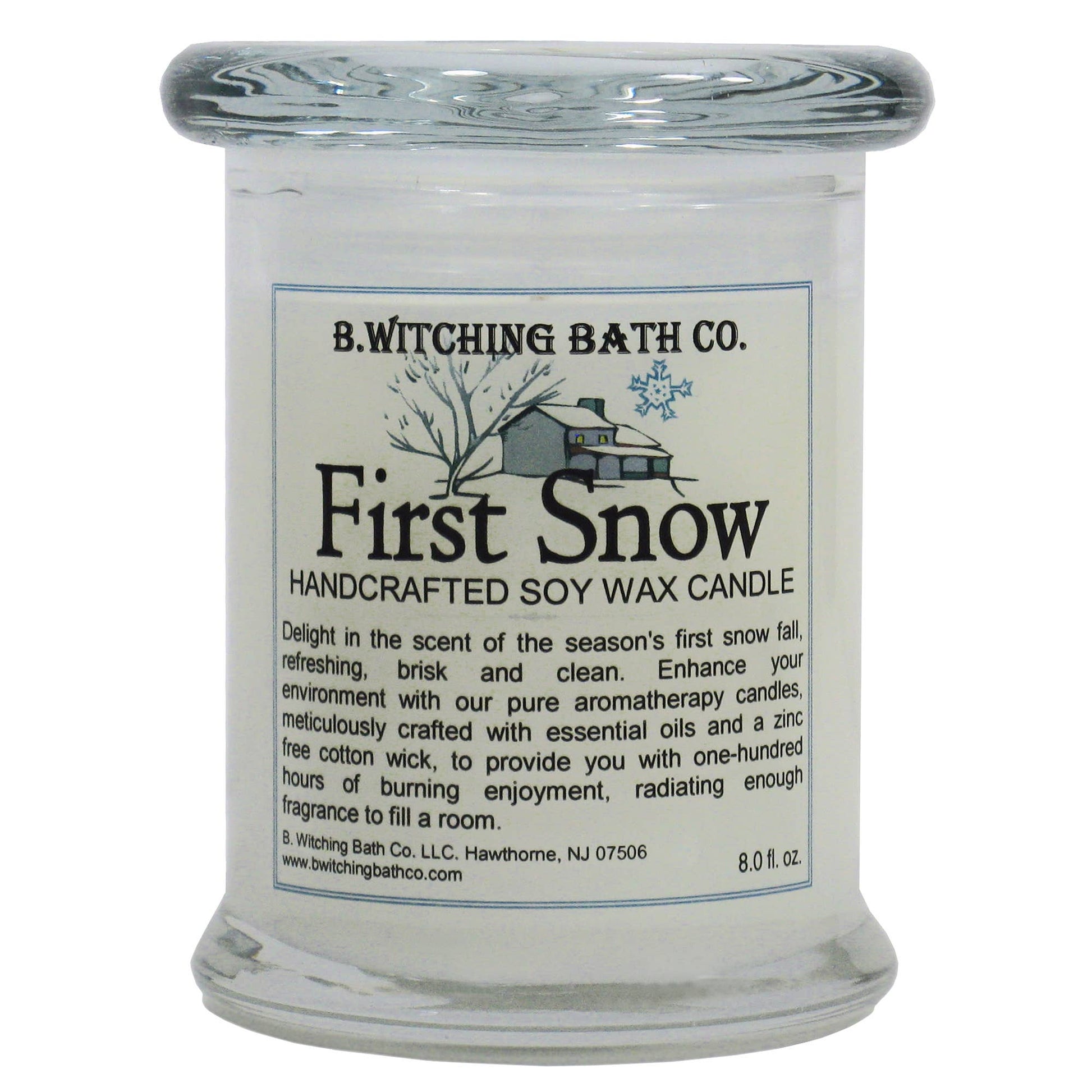 NEW! Our latest addition to our top selling First Snow Collection. Delight in the scent of the season's first snow fall, refreshing, brisk and clean. A delightful way to celebrate the season. Illumination has never smelled so beautiful. Our candles are handcrafted with 100% soybean wax and zinc free cotton wick. They are tastefully packaged in a 8 oz. glass apothecary jar with a matching lid and a graphic designed label. Burn time is over 90 hours.