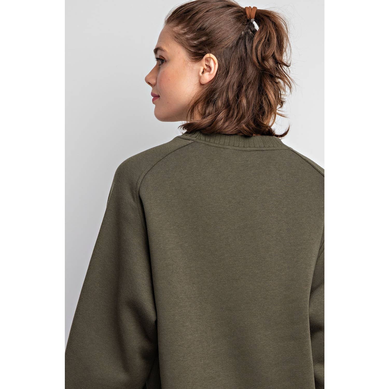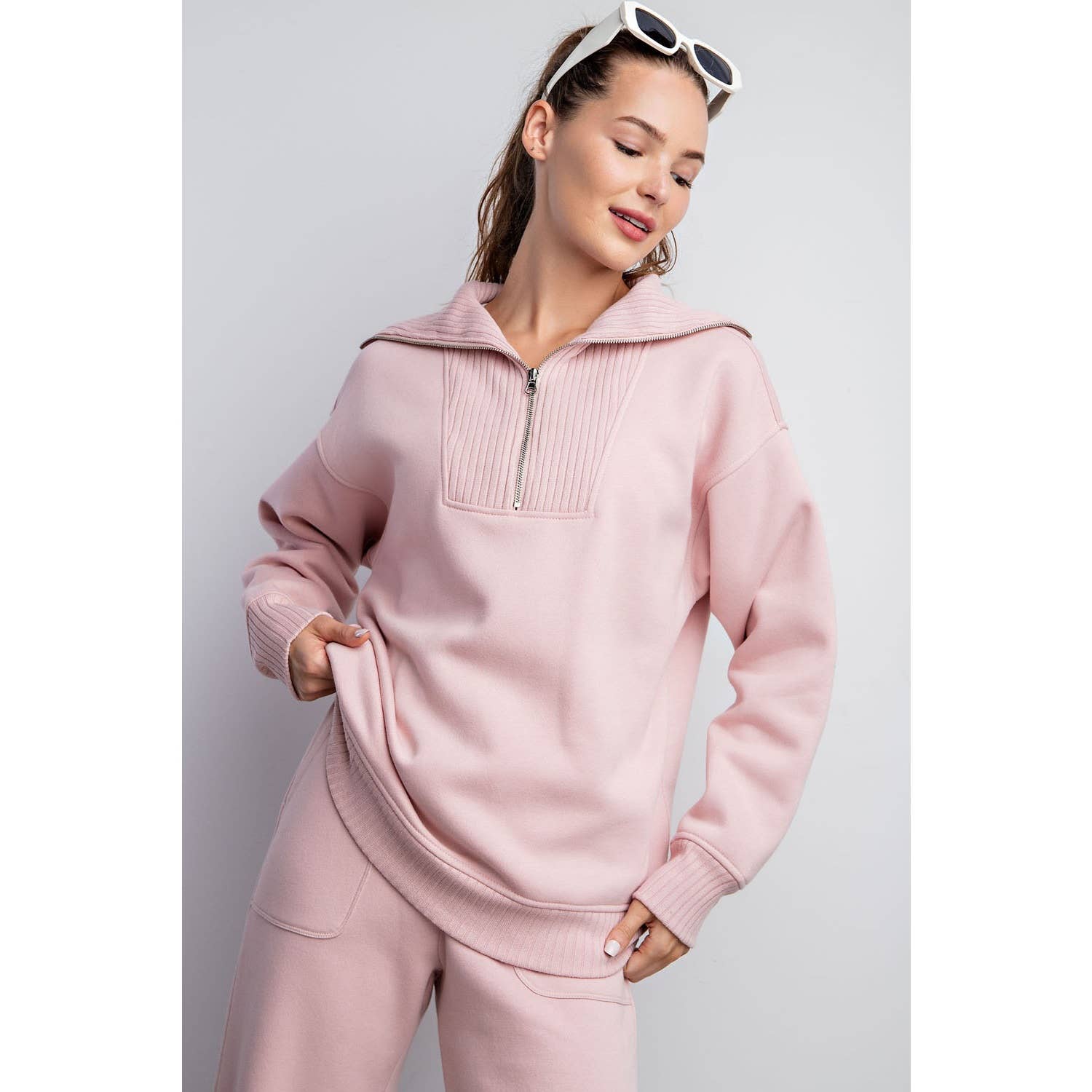 FRENCH TERRY RIBBED MOCK NECK PULLOVER: Sky Blue / L