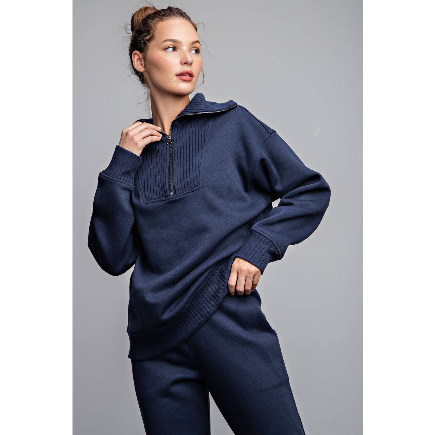 FRENCH TERRY RIBBED MOCK NECK PULLOVER: Sky Blue / XL