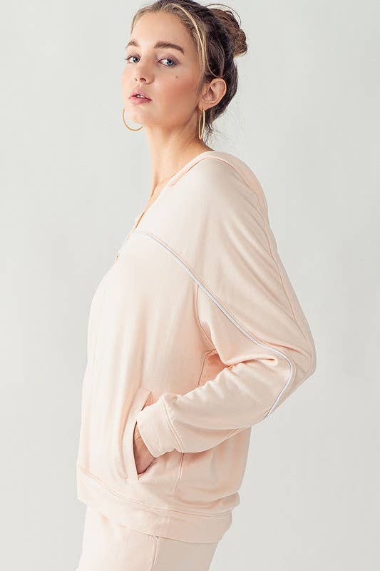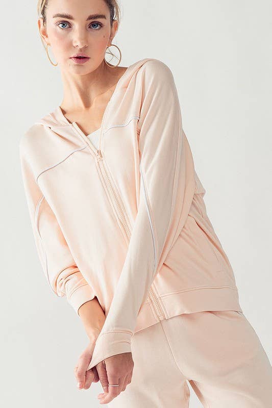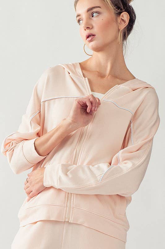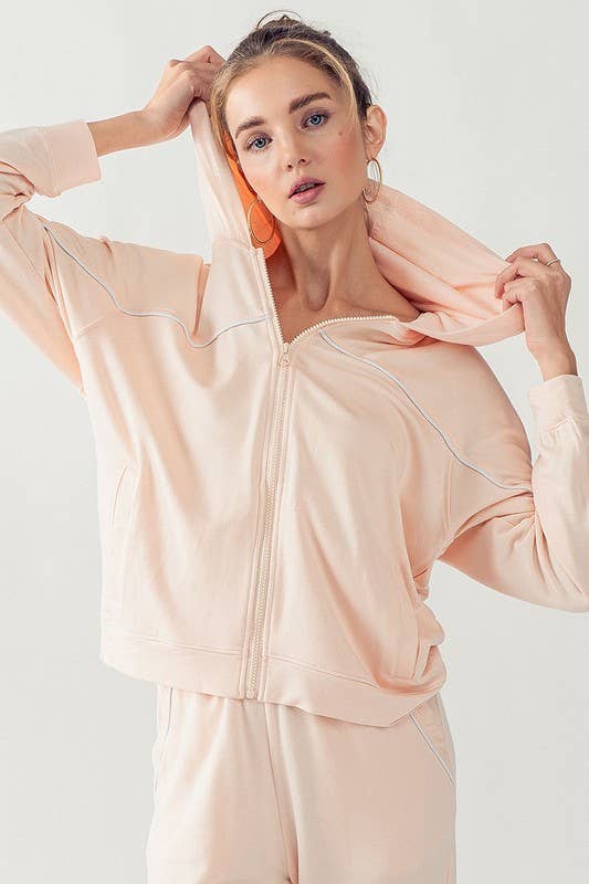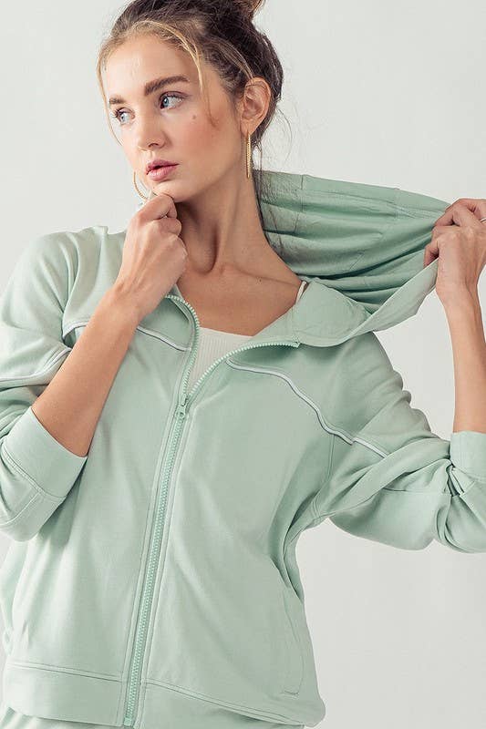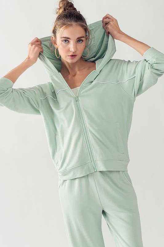 KJR11898 HOODED ZIP UP OUTER SEAM SWEATER: SURF SPRAY / S-2/M-2/L-2