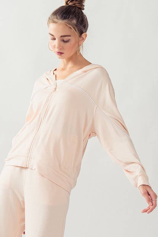 LONG SLEEVES HOODED ZIP UP OUTER SEAM COZY SWEATER