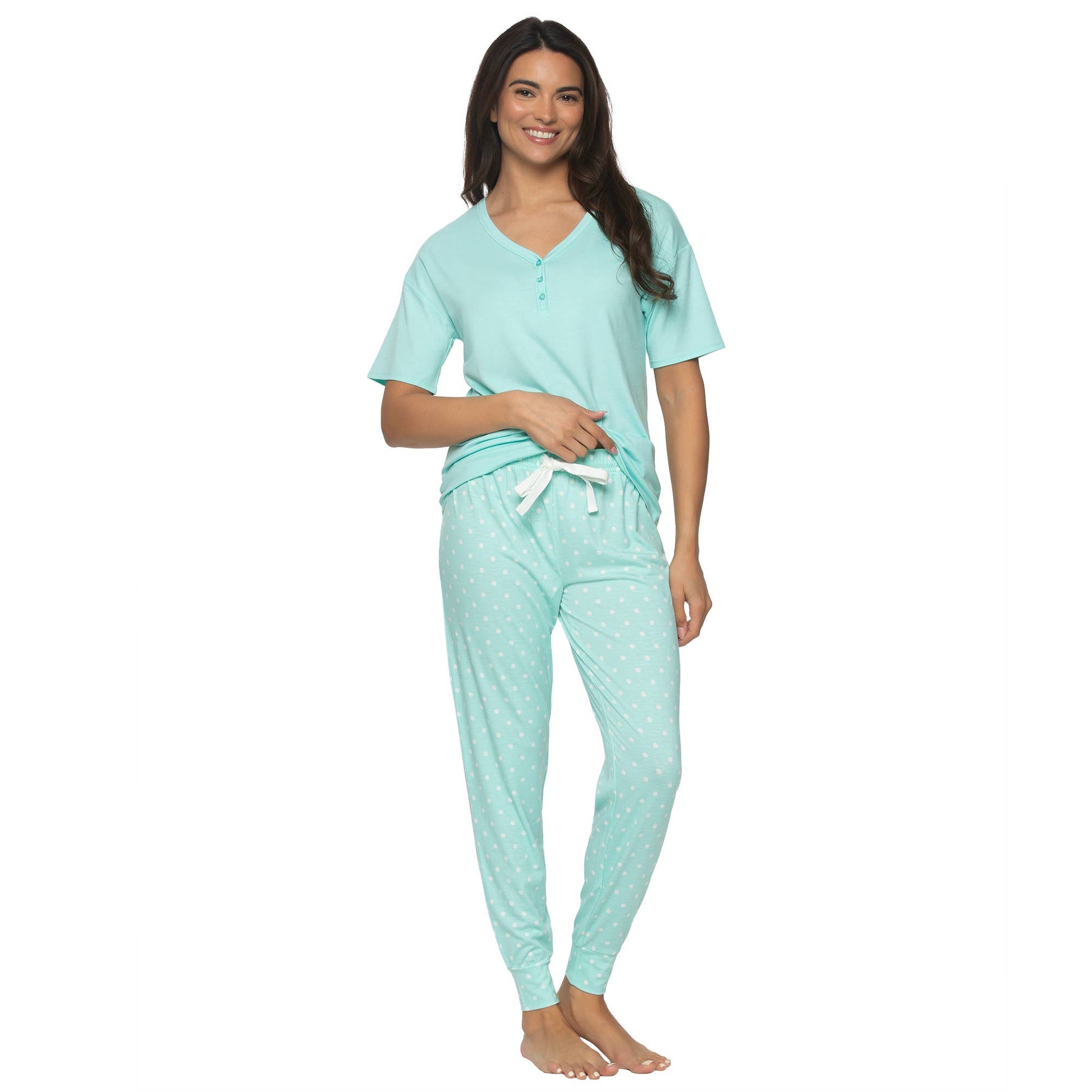 Jessie Stretch Jersey S/S V-neck Henley & Jogger Set - IWD: Island Paradise White Dots (IWD) / M