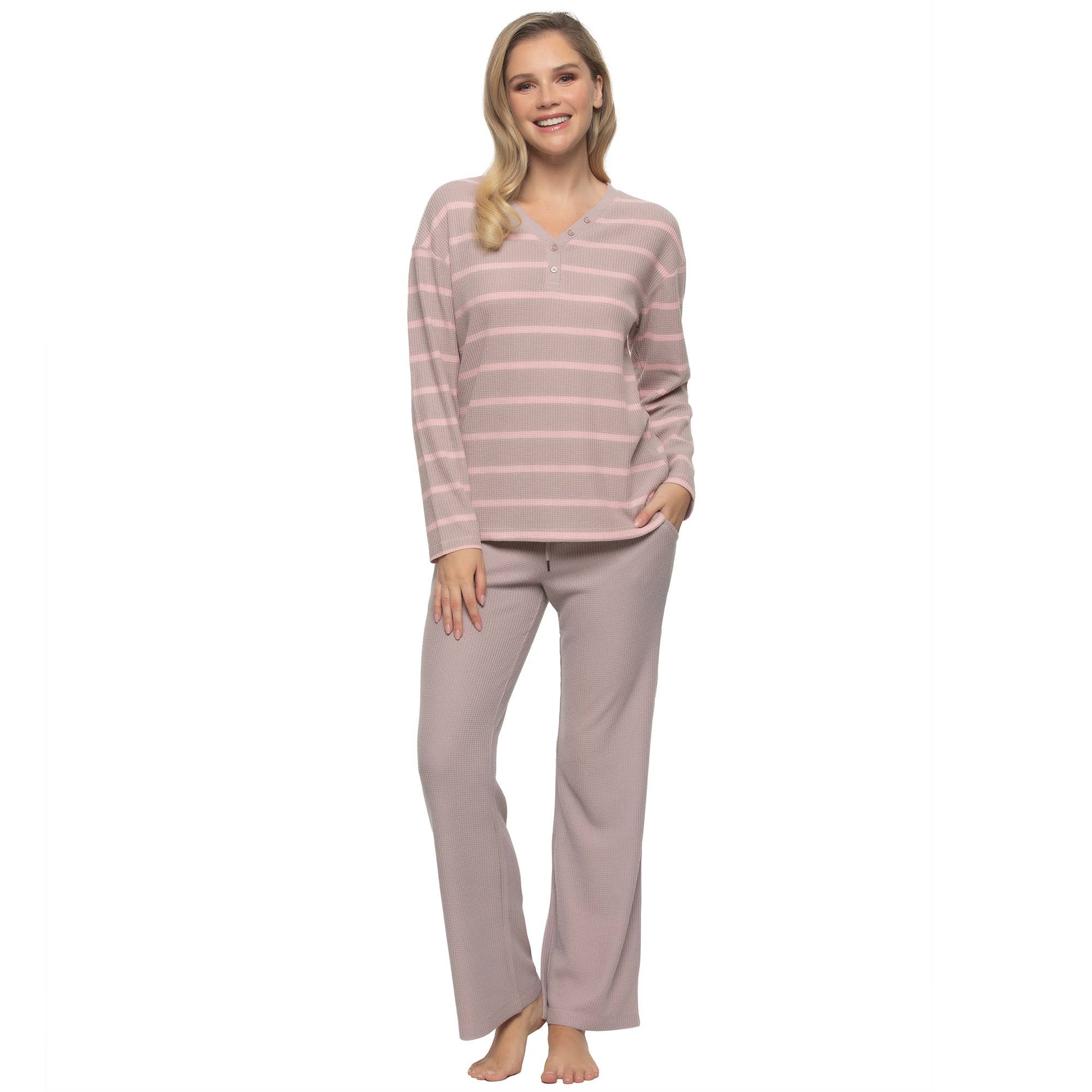 Jolie Waffle Knit L/S V-neck & Pant Set - Purple Dove