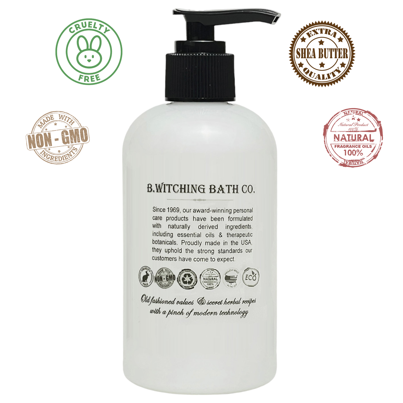 Indulge in the aroma of luscious swirls of melted dark chocolate blended with generous dollop of creamy vanilla marshmallow fluff. Our signature lotion formula moisturizes skin with organic African Shea butter and other skin nourishing extracts. It leaves skin amazingly soft with a smooth velvety after touch, never a greasy feel. The delightful chocolate scent will linger on skin for hours. Truly decadent. 8 fl. oz.