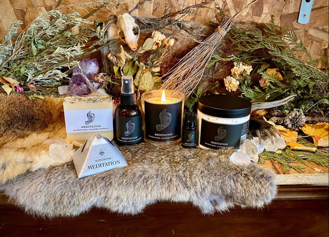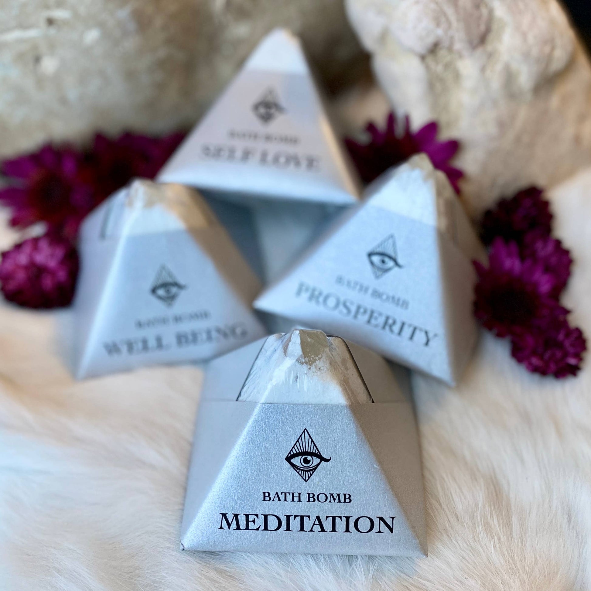 Ingredients:: Organic shea butter, organic coconut oil, non-gmo corn starch, citric acid, sodium bicarbonate, dead sea salt, organic botanicals, organic essential oils: Frankincense, Sage, Rosemary, Lavender & Patchouli, encasing a crystal charged under the full moon
