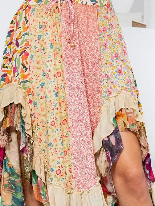 Overdyed Mid-Length Rayon Printy Skirt Boho Babe (XS-S-M)